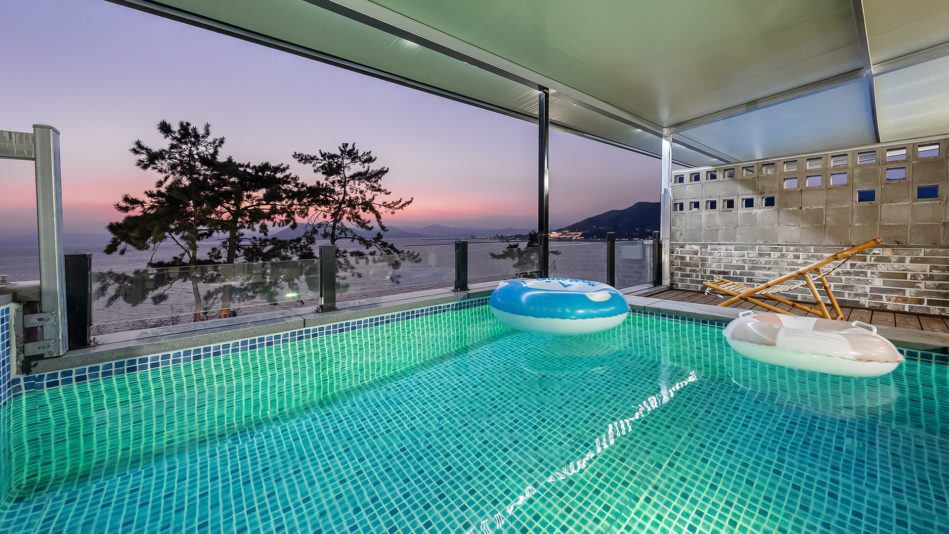 전경을 감상하며 프라이빗한 물놀이를 즐겨보세요. ※ 자세한 내용은 이용안내 페이지 참고 부탁드립니다.